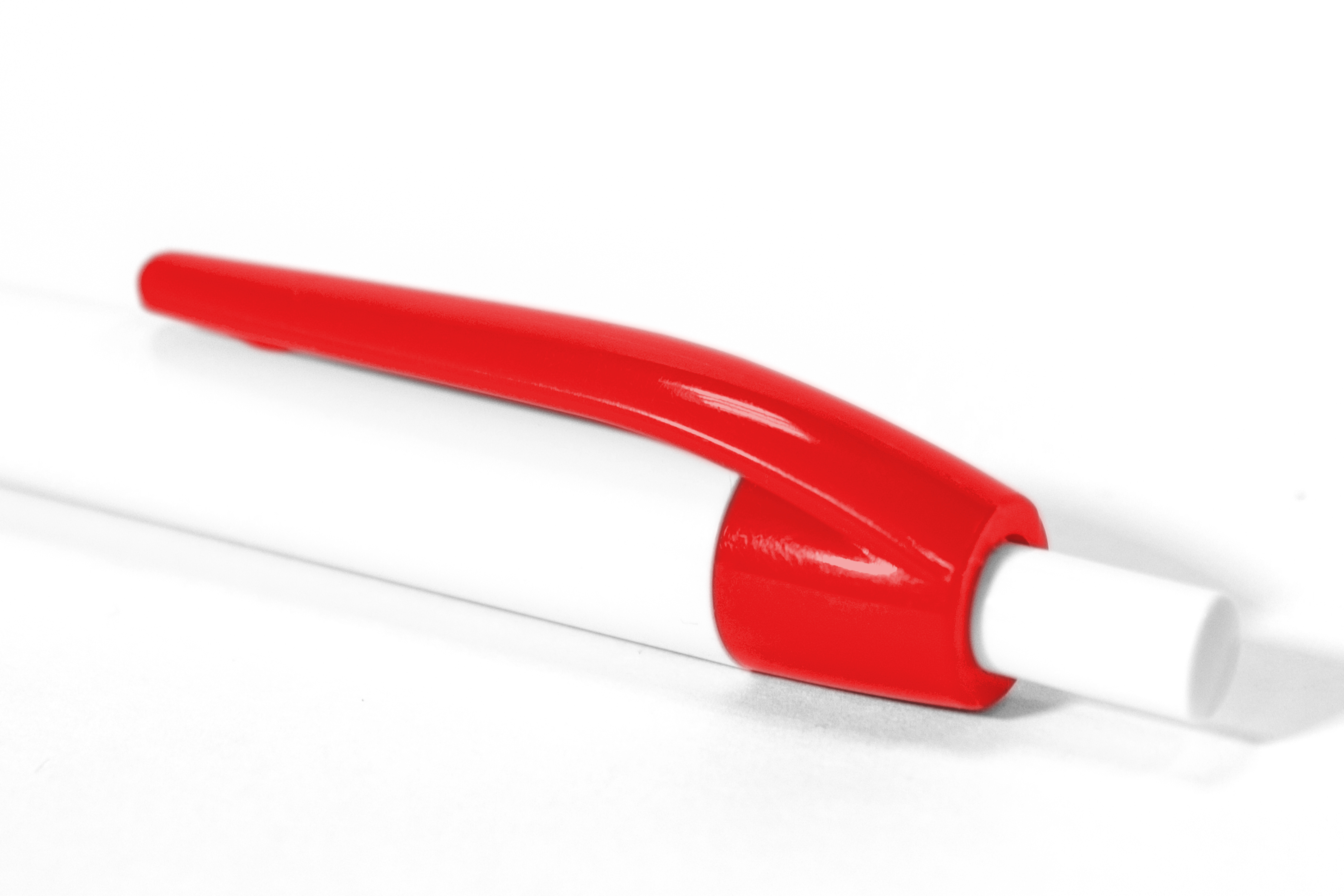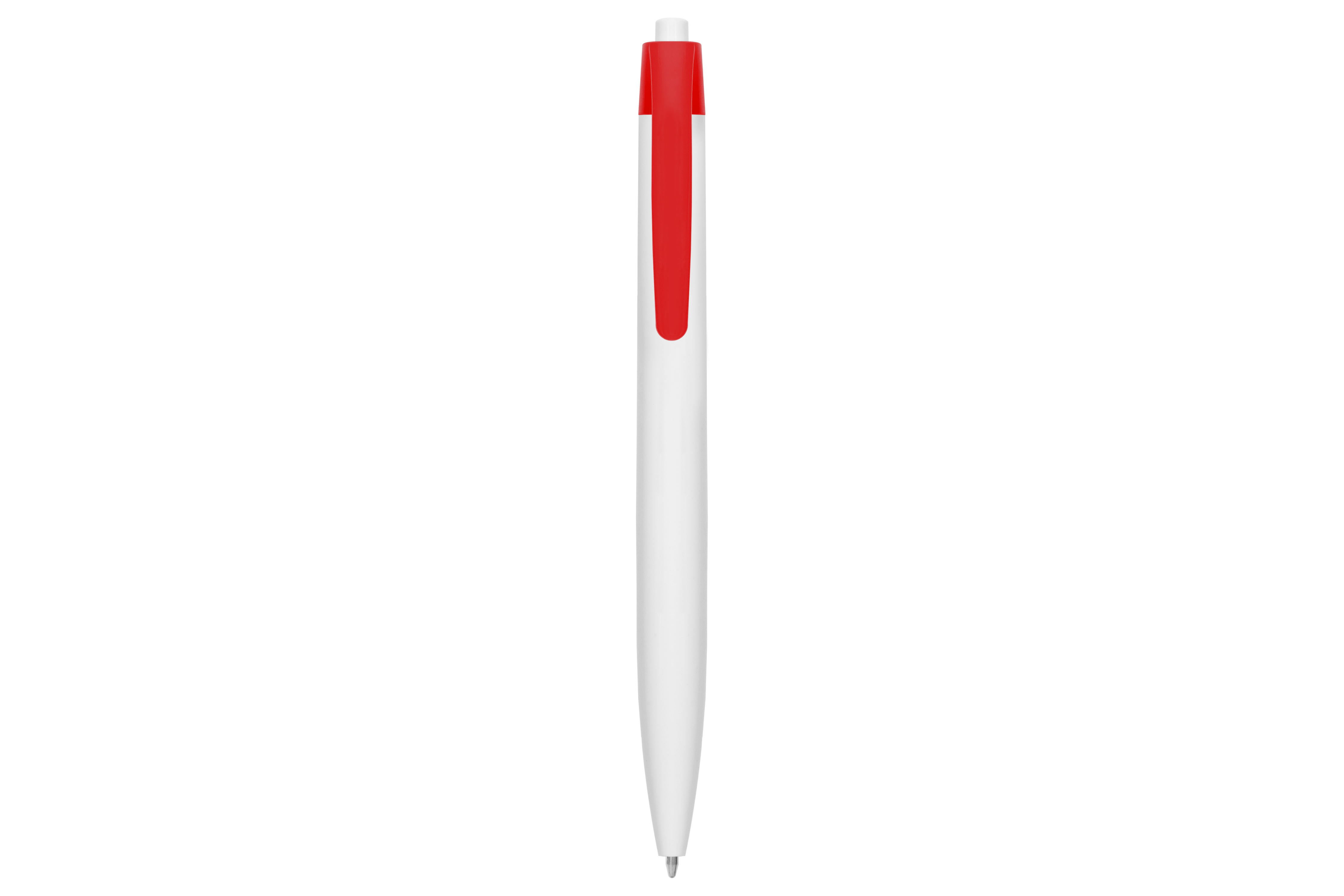Plástico. Bolígrafo con cuerpo y pulsador de color blanco y clip en color. Tinta negra.