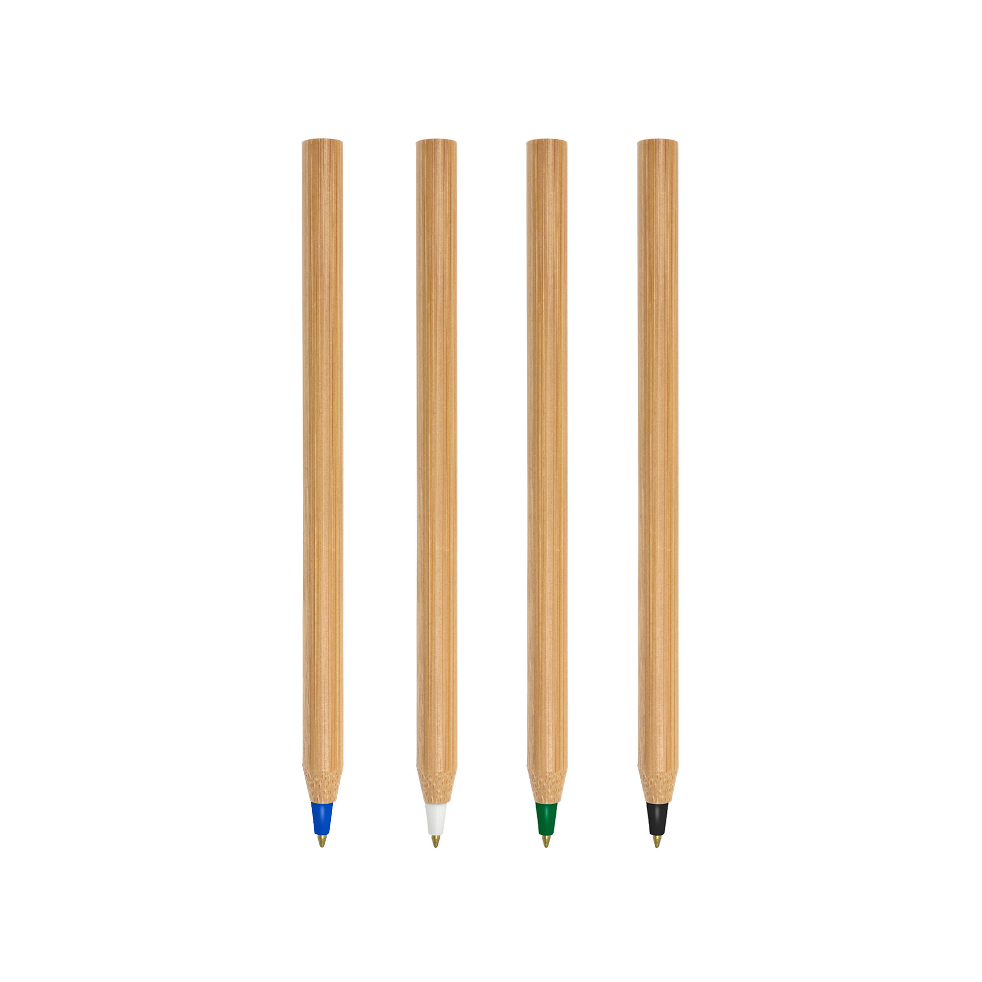 Bolígrafo con cuerpo de bambú y punta plástica de diferentes colores. Tinta Negra.