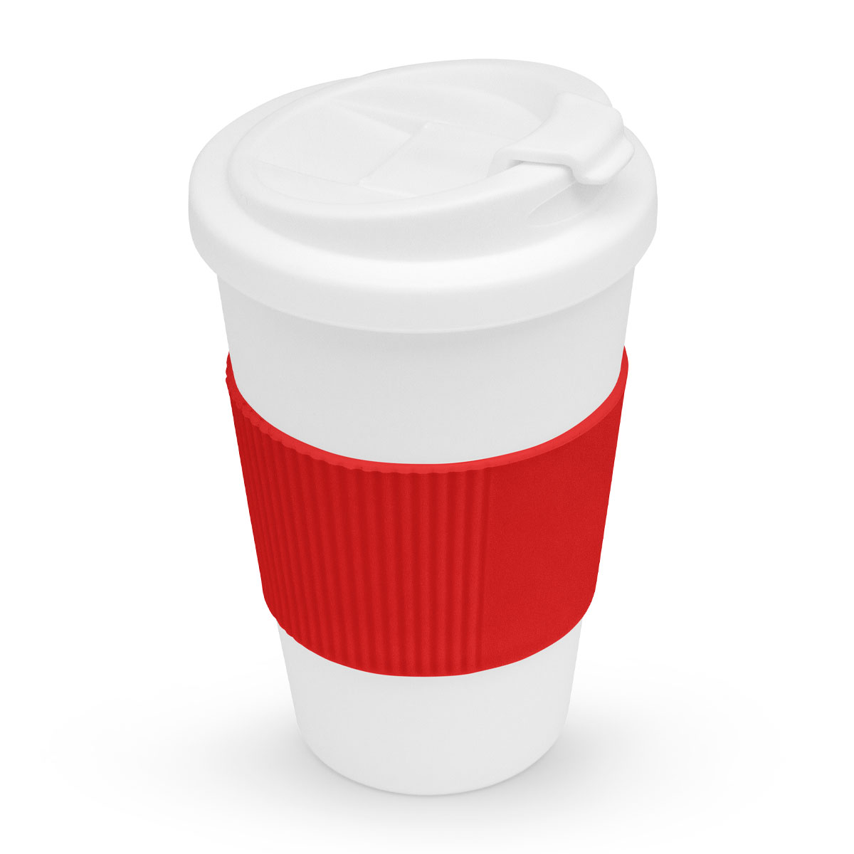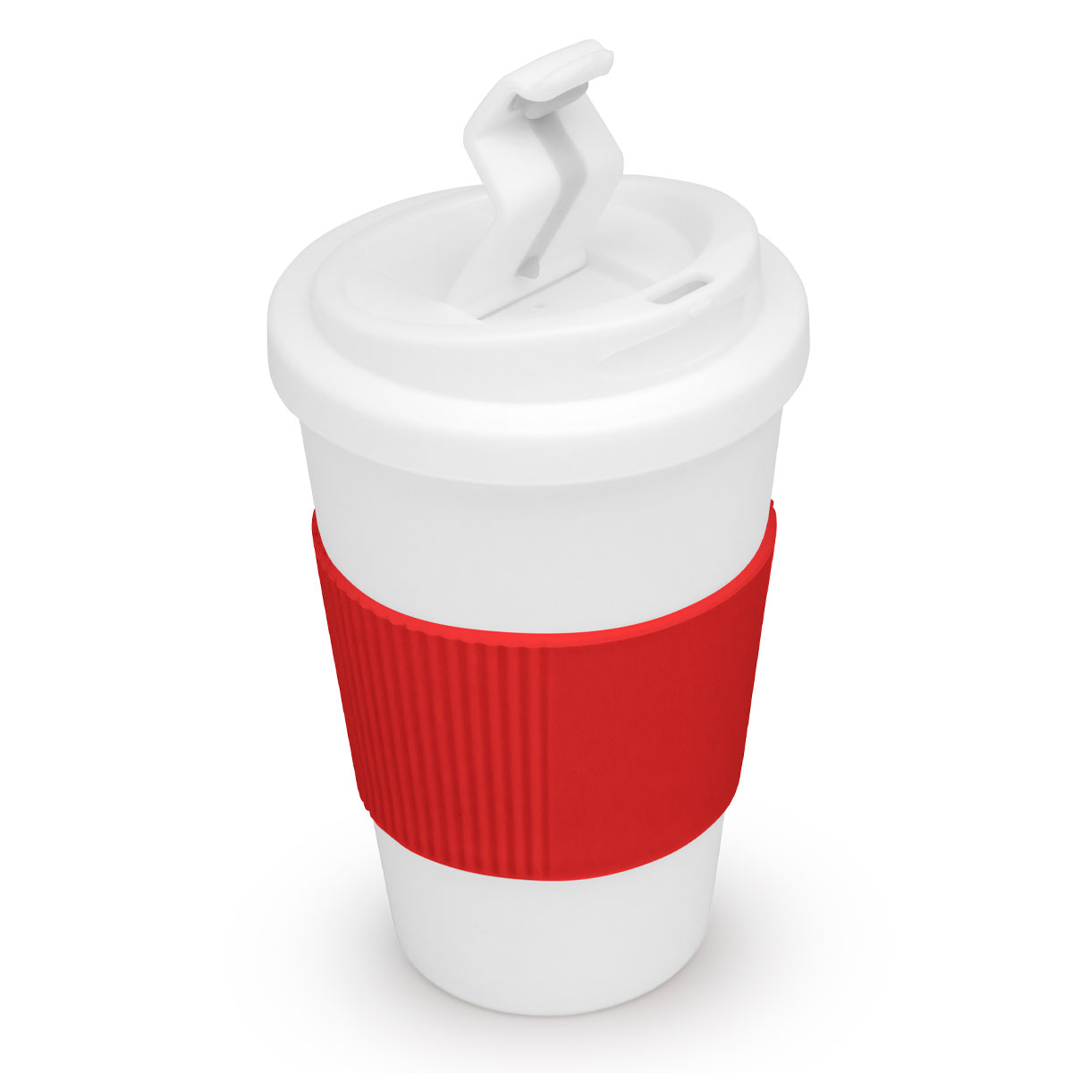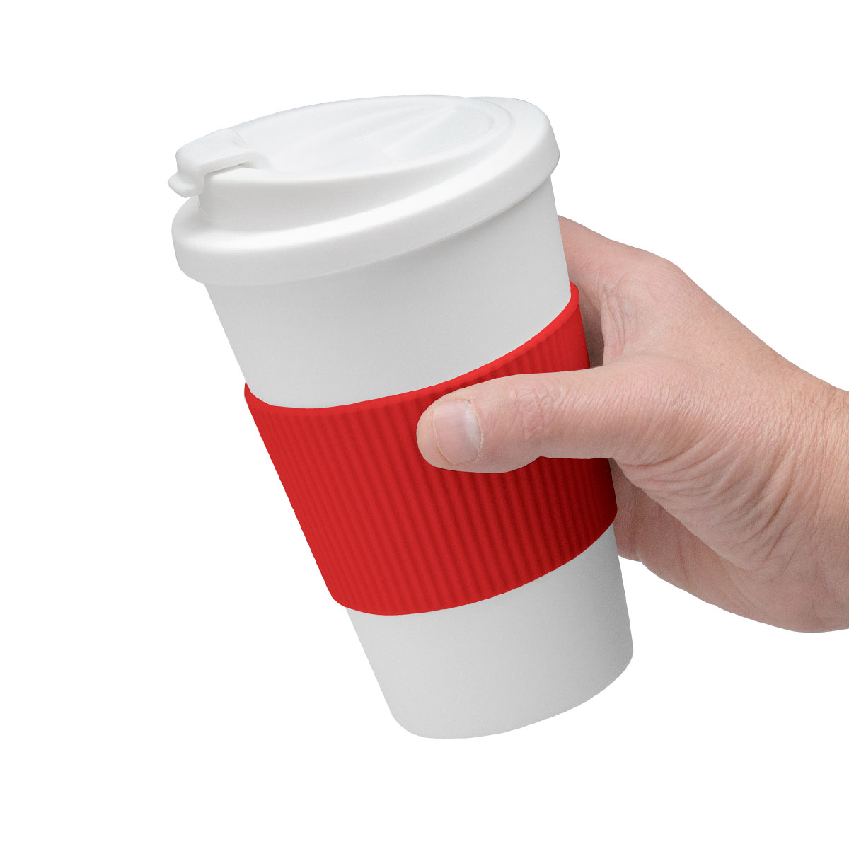 Ø 9.5 x 16 cm. Capacidad 330 ml. Plástico BPA free + manga de TPR. Vaso térmico doble pared con tapa a rosca y seguro antivuelco para que puedas transportarlo a todos lados. La manga siliconada es ideal para un agarre antideslizante. Mantiene las bebidas frías o calientes por más tiempo. Presentación en caja de regalo.
