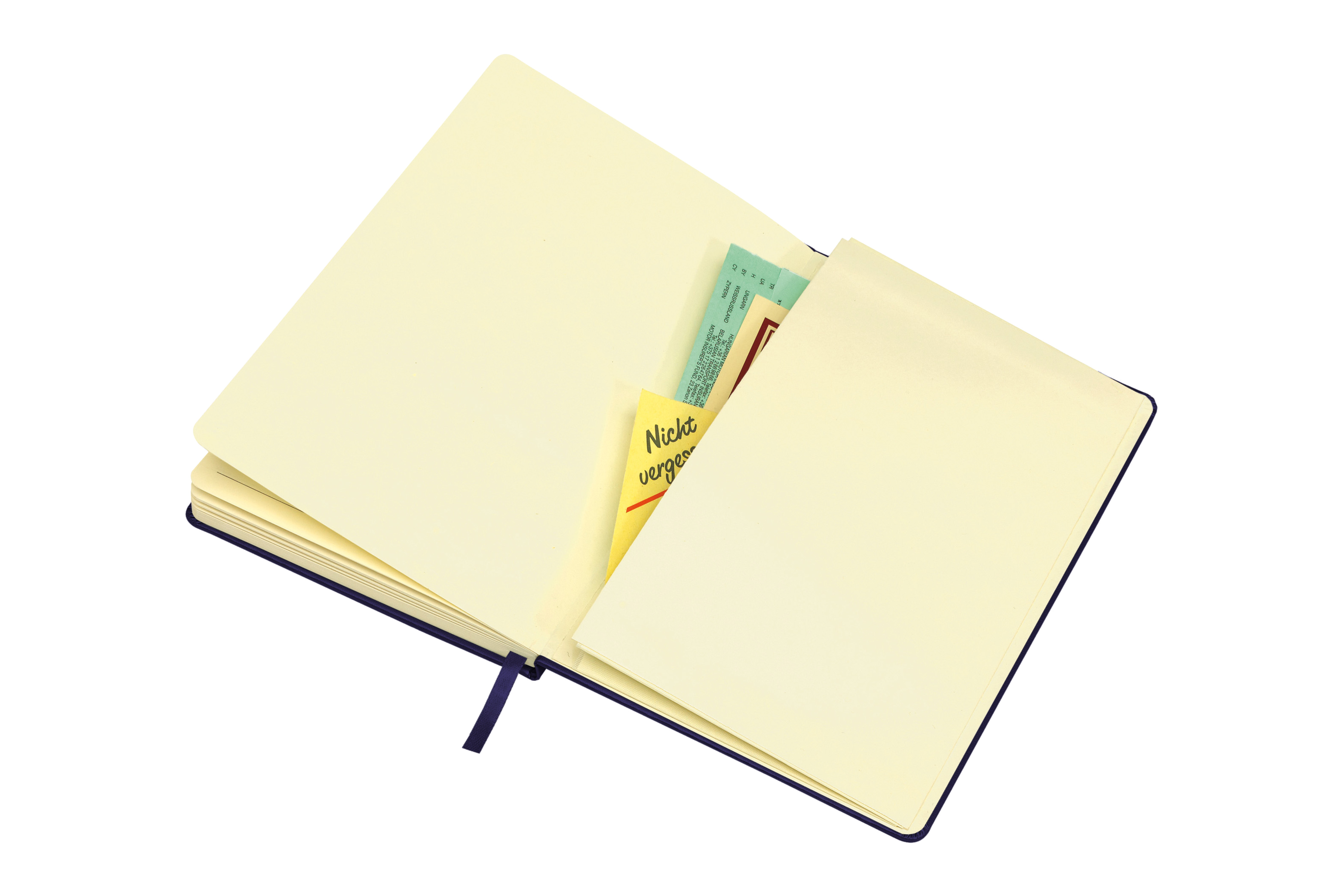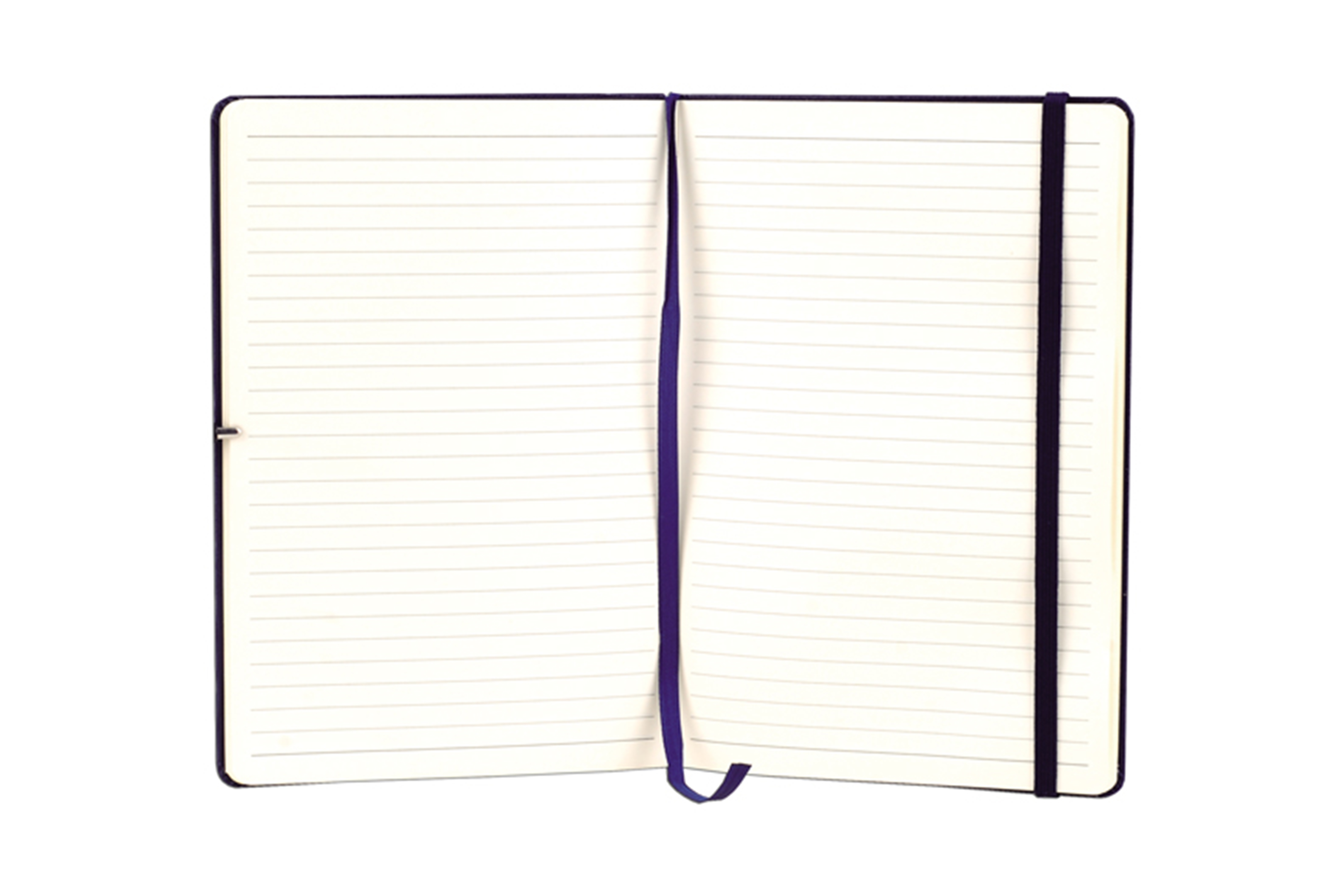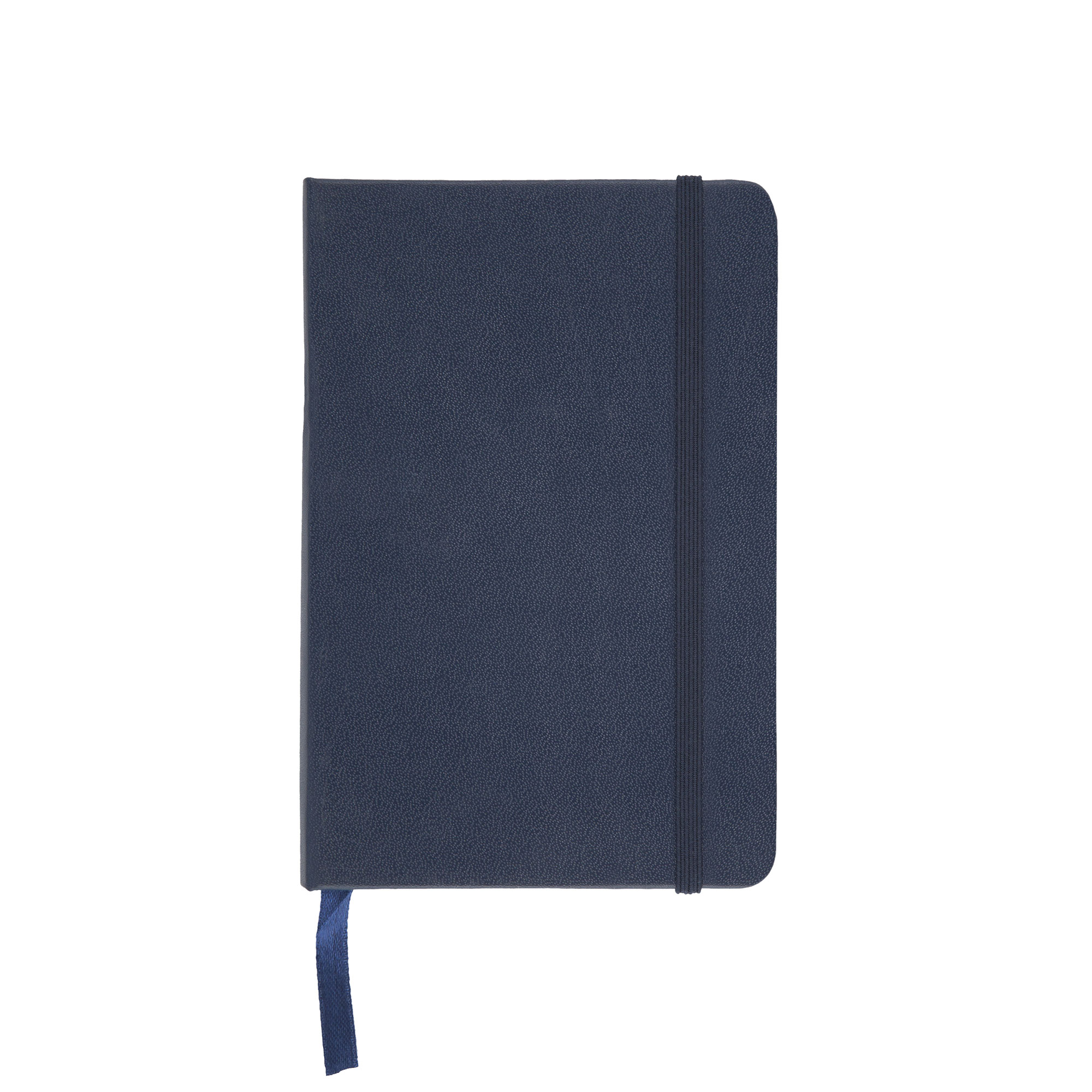 Cartón recubierto en poliuretano. 21 x 14 x 1,5 cm. Tamaño similar a A5. 80 páginas rayadas. Separador de hojas en tela. Cierre con banda elástica. Bolsillo interior en la parte trasera de la libreta.