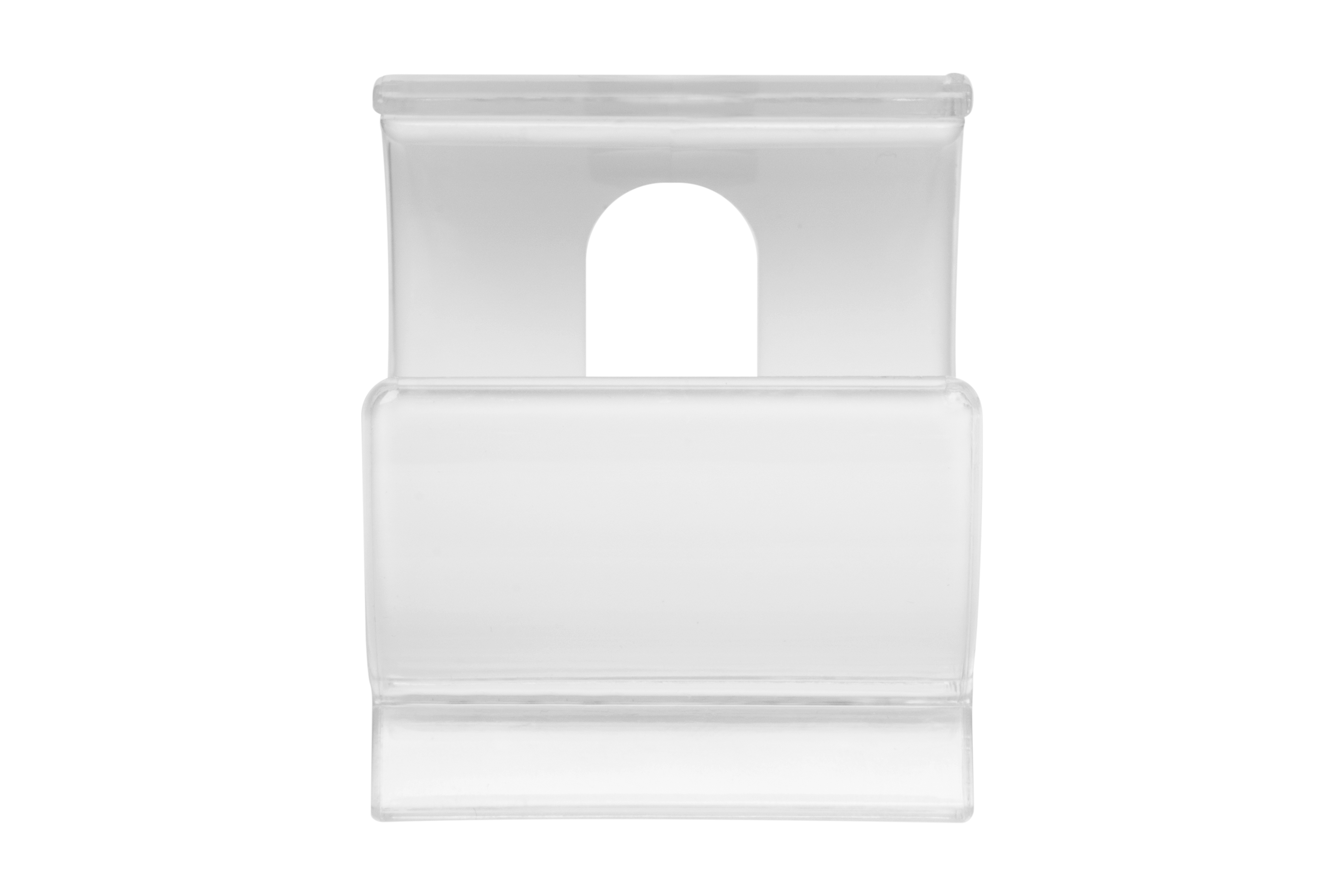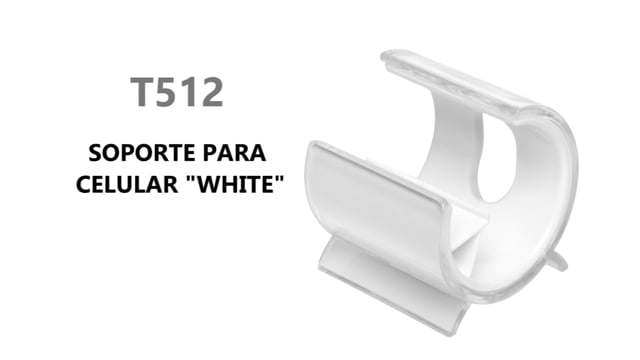 Ø 5,5 x 5 cm. Plástico PS. Soporte para apoyar el celular. Plástico transparente en el exterior y Plástico blanco en el interior. El celular se apoya en el interior del soporte.